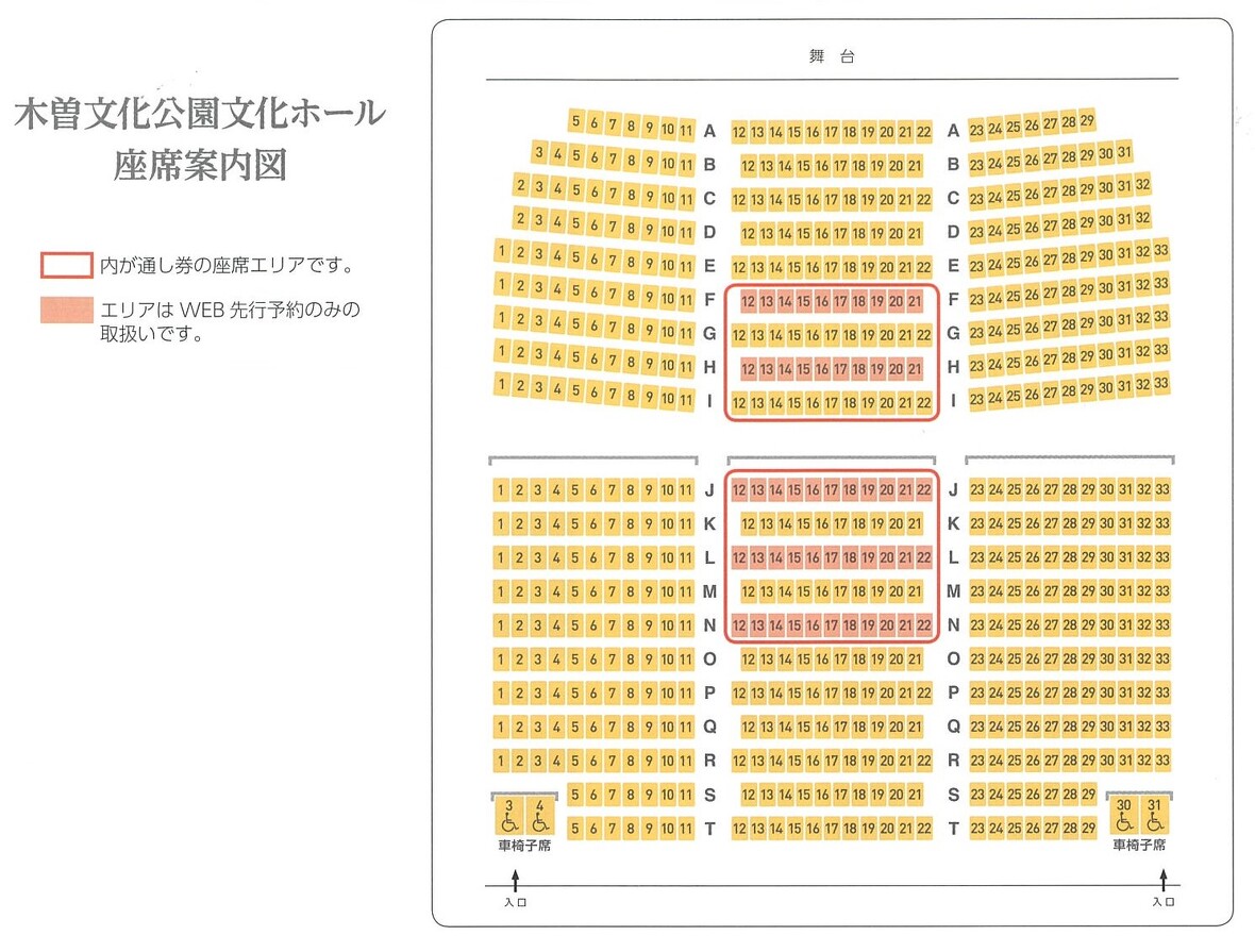 - ※文化ホールの座席案内図をご覧いただき、お電話ください。